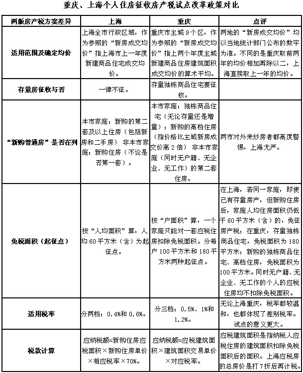 “重庆模式”和“上海模式”的根本区别就是,征税范围不同,重庆对增量房和存量房征税,而上海只对增量房征税。