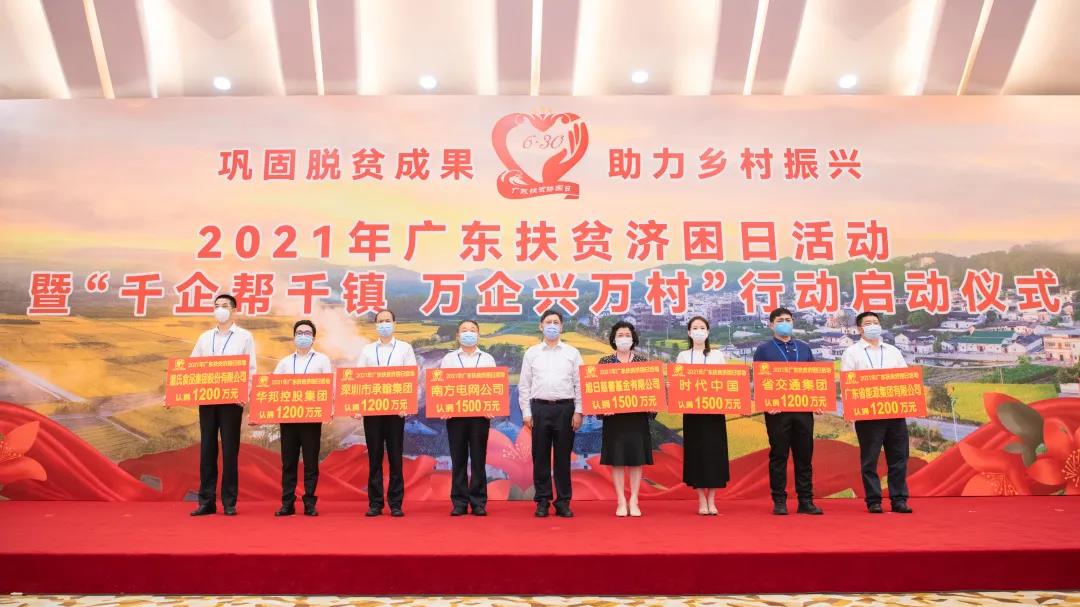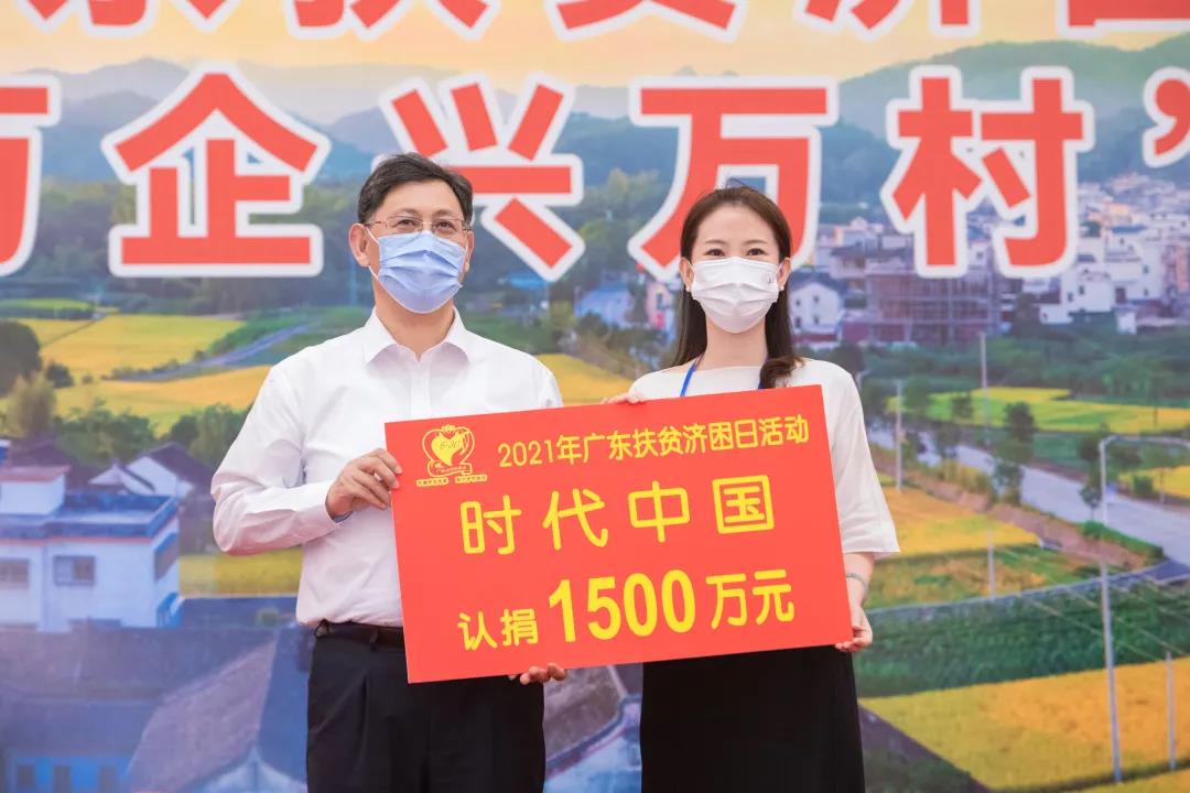 2021年6月30日,2021年广东扶贫济困日活动暨“千企帮千镇 万企兴万村”行动启动仪式举行。时代中国控股有限公司(下称“时代中国”)通过广东省时代公益基金会(下称“时代基金会”)认捐1500万元。